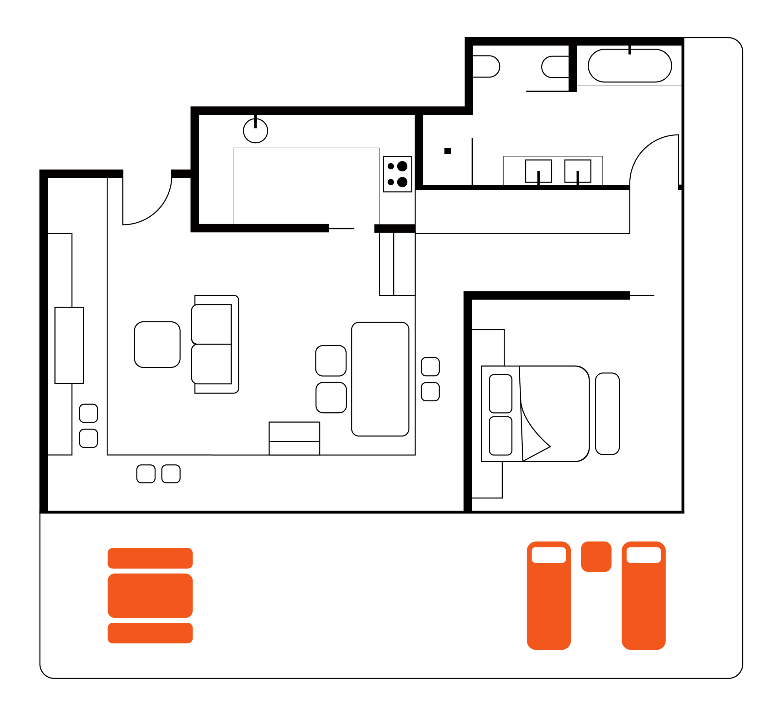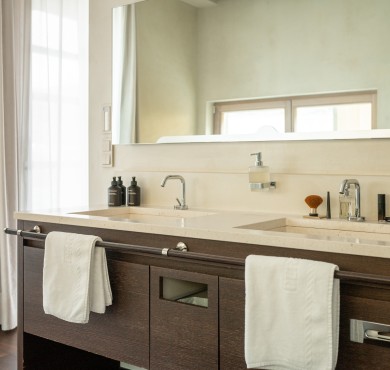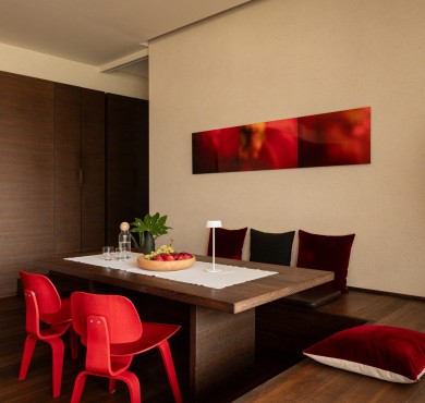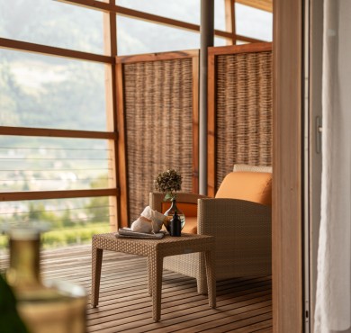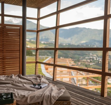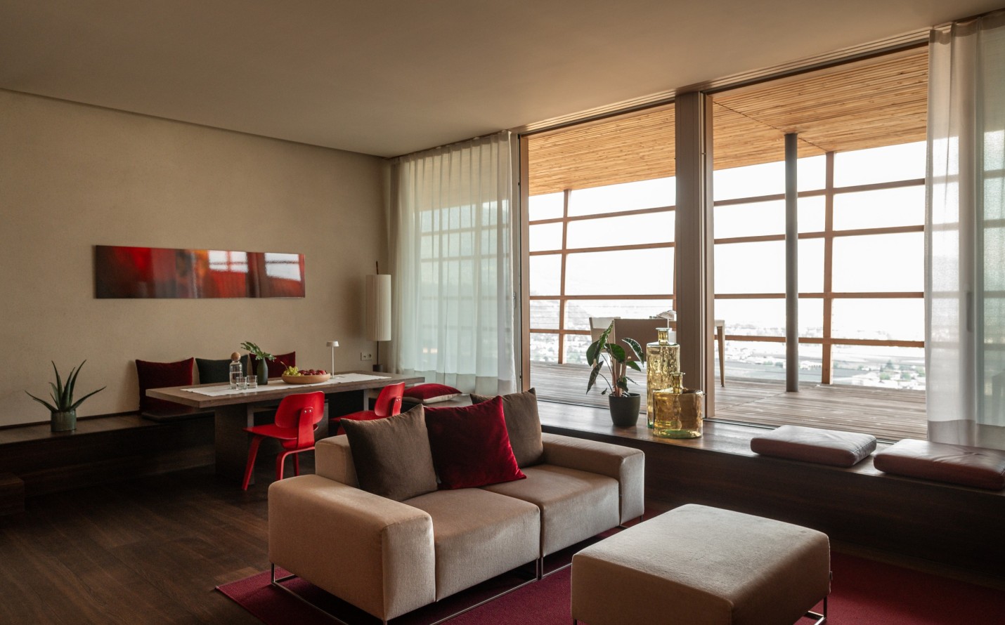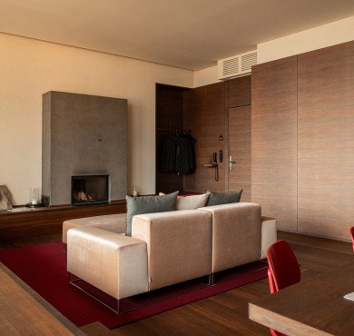 Elegant and roomy, with views stretching southwards into the valley and eastwards to the mountains. A wrap-around terrace for sunsets and complete privacy. From the underground car park, the lift takes you straight up to the penthouse. Peace and comfort, clear views and natural light.