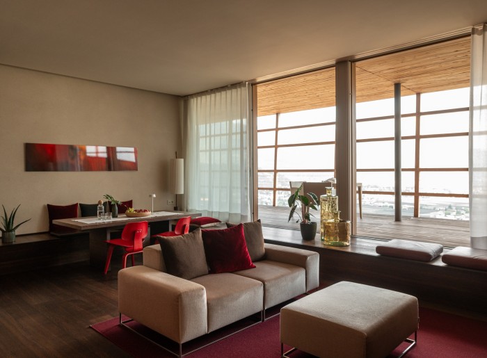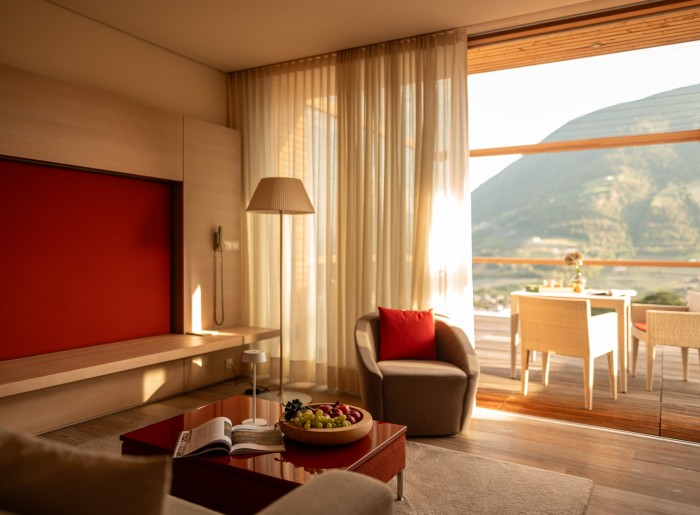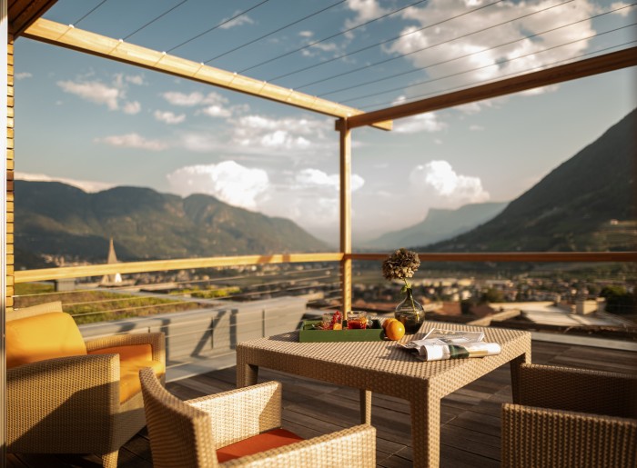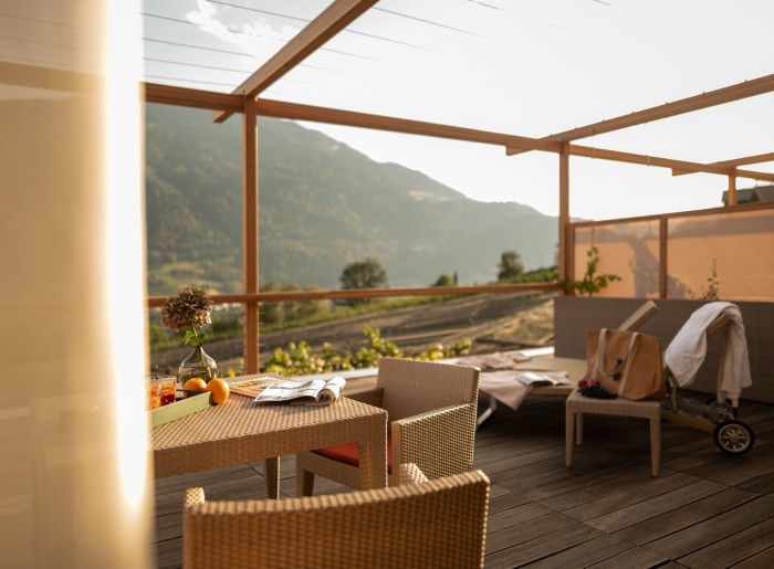 Panorama infinto verso sud e verso est, senza nessun'altra suite accanto. Tutt'intorno montagne, valli, in lontananza paesi, borghi, pendii, colline, vicinissimi vigneti, palme, cipressi e meli. Tanto tempo e spazio, per tanti momenti di luce e intimità.