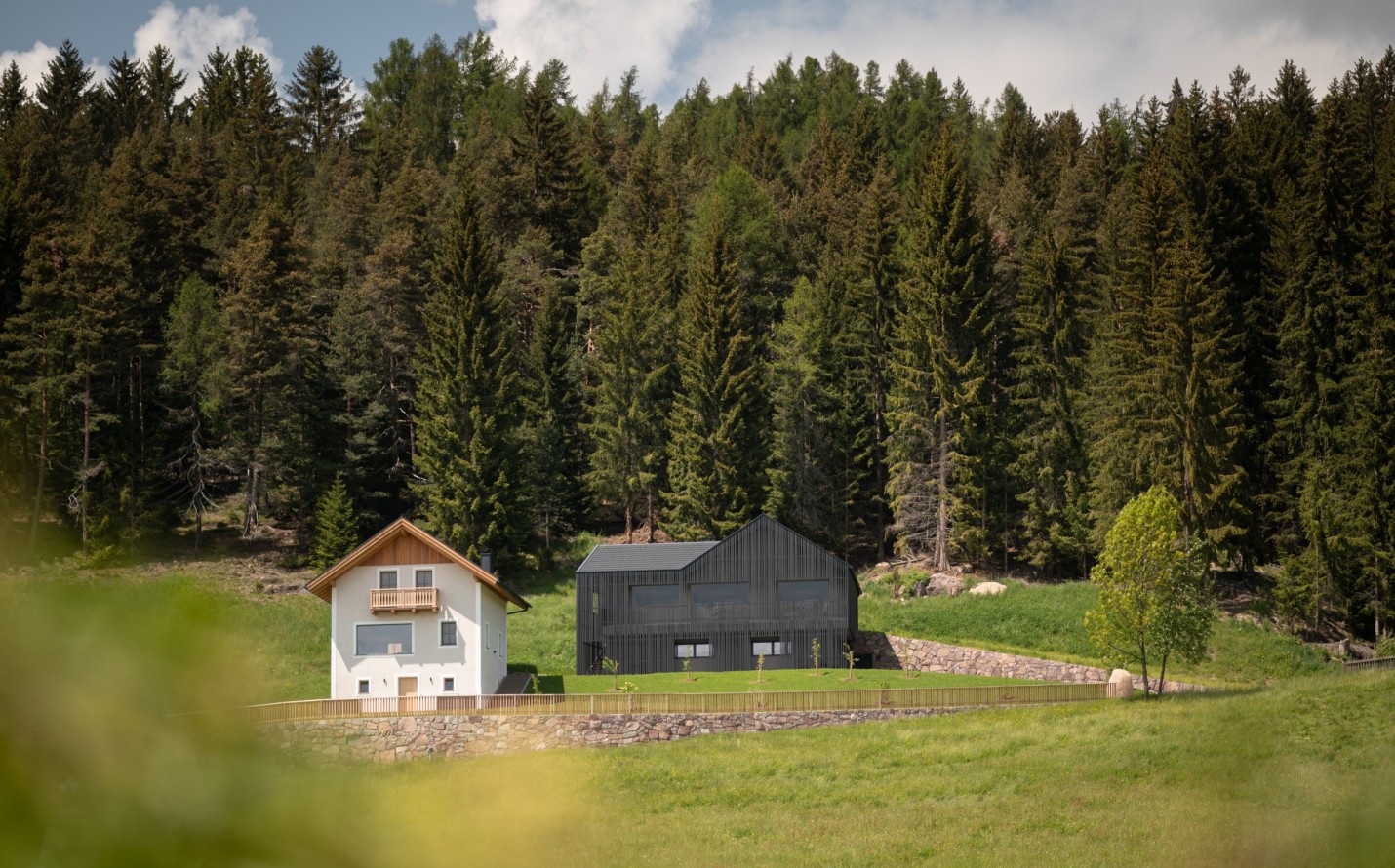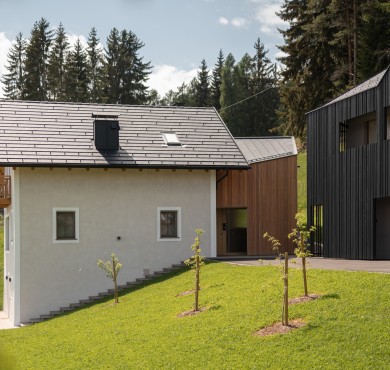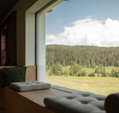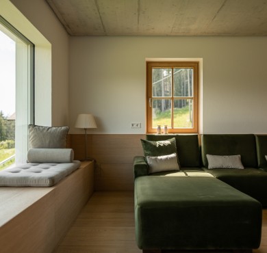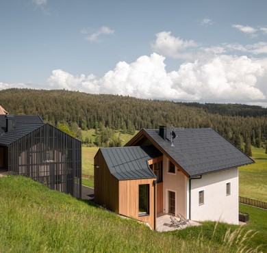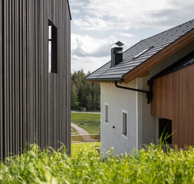 Bosco e prato. E la felice unione tra maso centenario e fienile contemporaneo, in una piccola frazione tra Collalbo e Auna di Sopra. Qui si possono vivere a pieno molte cose diverse: relax, lavoro creativo, attività all’aperto, riposo, condivisione.