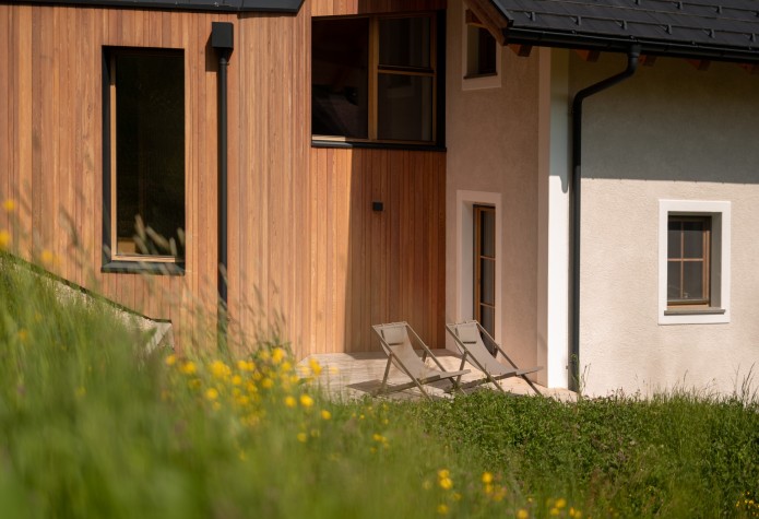 Riposare, dopo una giornata all'aperto con scarponi da montagna, bicicletta o sci, è davvero importante. Nella nostra sauna finlandese con doccia potrete finalmente rilassarvi. Ma anche sul prato, all’aperto, sotto i raggi del sole di montagna.